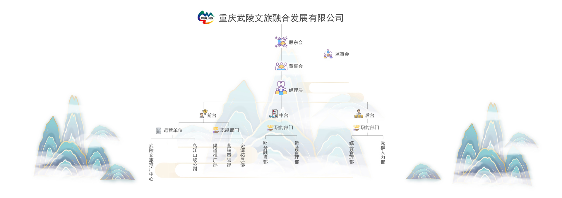 為持續(xù)推進國務(wù)院同意印發(fā)的《武陵山片區(qū)區(qū)域發(fā)展與扶貧攻堅規(guī)劃》實施,切實貫徹重慶市委市政府“一區(qū)兩群”協(xié)調(diào)發(fā)展戰(zhàn)略,促進鞏固脫貧攻堅成果與鄉(xiāng)村振興的有效銜接,經(jīng)武陵山文旅發(fā)展聯(lián)盟的積極努力,在重慶市委市政府的支持下,在市委宣傳部、市文化旅游委等部門的指導(dǎo)下,于2021年5月,由重慶旅游投資集團有限公司、重慶文化產(chǎn)業(yè)投資集團有限公司、重慶發(fā)展投資有限公司共同出資組建了重慶武陵文旅公司(現(xiàn)為重慶文旅集團絕對控股),注冊資本金2億元,業(yè)務(wù)范圍包括景區(qū)游覽管理、休閑農(nóng)業(yè)和鄉(xiāng)村旅游資源的開發(fā)經(jīng)營、旅游開發(fā)項目策劃咨詢等70余項。