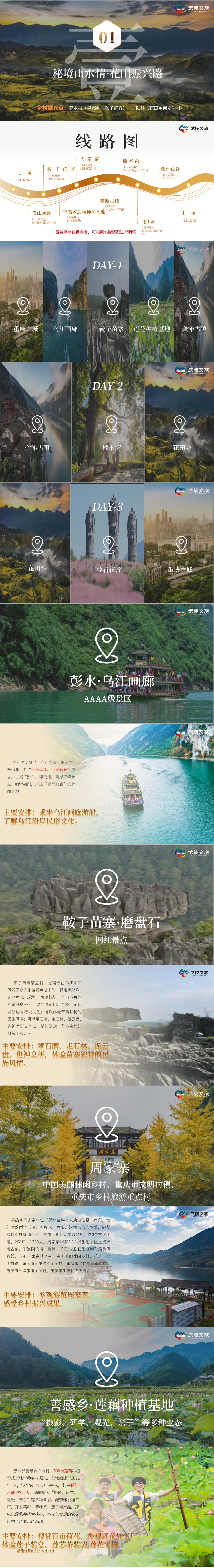 踏上《秘境山水情·花田振興路》,開啟一場融合自然奇觀、民族風(fēng)情與鄉(xiāng)村新貌的深度之旅!我們將穿行于壯麗的烏江畫廊百里山水畫卷,探訪鞍子苗寨的原生態(tài)風(fēng)情與古老歌謠。在善感鄉(xiāng)蓮花種植基地,感受荷塘碧浪、蓮香沁脾的田園詩畫;步入周家寨與龔灘古鎮(zhèn),聆聽千年石板路訴說的巴渝故事與碼頭傳奇。深入楠木灣的幽靜綠意,沉醉于花田鄉(xiāng)層層疊疊的錦繡梯田。旅程的華彩在疊石花谷綻放,億萬年的地質(zhì)奇觀與繽紛花海交織出奇幻夢境。這是一條風(fēng)光如畫的秘徑,更是一條見證鄉(xiāng)土蝶變、感受蓬勃生機(jī)的振興之路。即刻啟程,邂逅山水之靈,觸摸振興之脈!
